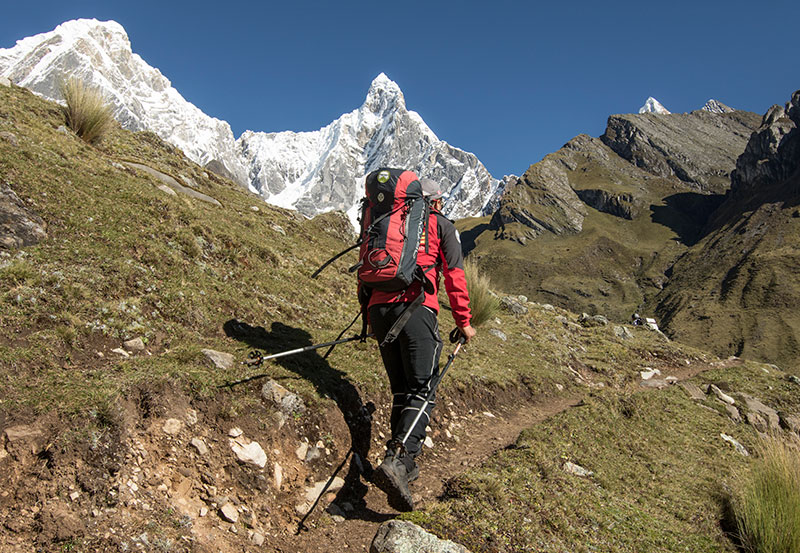 Então variante da rota em parte pathless e desgastante executa "Fechar" para os picos estranhos e geleiras do passe Huayhuash e o palco panorâmica magnífica a maior parte da caminhada. Na margem oeste da subida de superfície de Carhuacocha para Laguna Siula (4.290 m), além da queda de gelo da geleira degradante de Nevado Sarapo (6.143 m) até o lago mais próximo (4.650 m) e, finalmente, atravessamos a passagem Siula (4.950 m), uma vista fantástica com impressionantes "vistas panorâmicas".