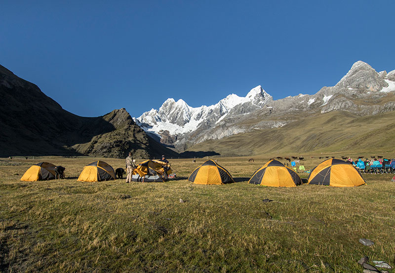 Dia 13: Dia de descanso - Lagoa Jahuacocha (4066 m) Opcional: Caminhada até os pontos de vista do Cerro Berlin (5094 m) ou Paso Sambuya / Rondoy (4750 m)